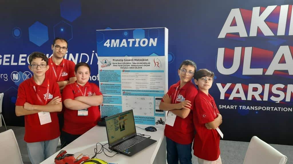 Bu değerli başarılarından dolayı öğrencilerimiz Murat Basri Gölünük, Taha Kılınçarslan, Hamza Eymen Okşar ve Ömer Faruk Çalışır ile projeye danışmanlık yapan Bilişim Teknolojileri Öğretmenimiz Adem Celayir’i tebrik ediyor, başarılarının devamını diliyoruz.