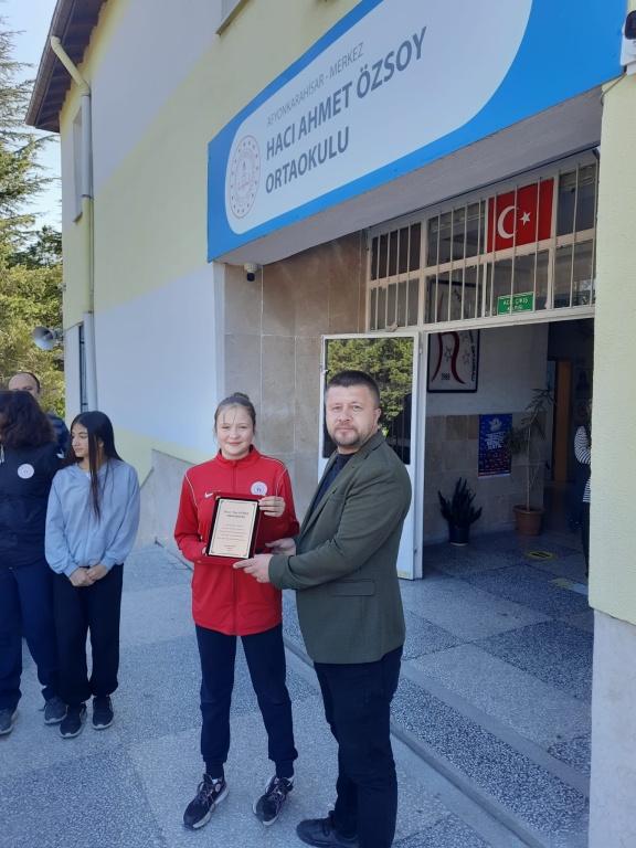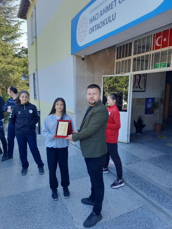 Rize ilinde gerçekleştirilen Okullararası Yıldız Kızlar Güreş Müsabakalarında yarıştıkları kategorilerde ülke derecesi elde eden öğrencilerimize, Mahalle Muhtarımız Sayın Hasan Sezgin tarafından plaket takdim edilmiştir.